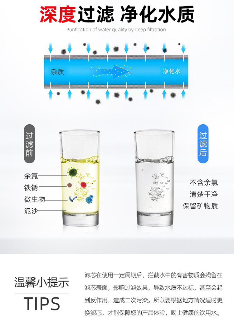 压缩活性炭滤芯:以好的果壳炭及煤质活性炭为原料,采用高科技技术,经特殊工艺加工而成,活性炭滤芯内外均分别包裹着一层有过滤作用的无纺布,确保炭芯本身不会掉落炭粉,外层为塑料网套,使滤芯具有完整的外表与整洁的外观。炭芯两端装有柔软的橡胶密封垫,使炭芯装入滤筒具有良好的密封性。成品活性炭滤芯均用塑料薄膜严密包封,防止滤芯被污染并保持滤芯经常处于清新状态。它集吸附、过滤、截获、催化作用于一体,使用时不需添加助滤剂,也不需进行碳处理后的过滤。能基本去除水中的杂质物、其他放射性物质,并有脱色、去除异味的功效。