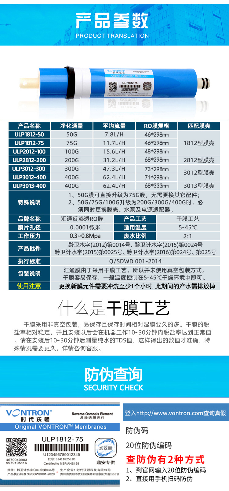 品牌:汇通时代沃顿,世韩膜,陶氏膜等