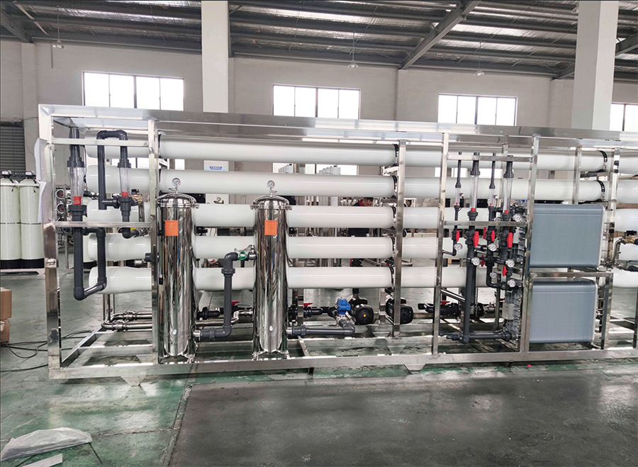 原水→原水加压泵→多介质过滤器→活性炭过滤器→软水器→精密过滤器→阳树脂过滤床→阴树脂过滤床→阴阳树脂混床→微孔过滤器→用水点